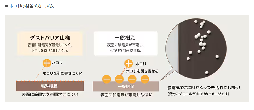 ホコリが寄ってくる原因そのもの(静電気)を抑えています。