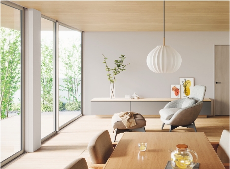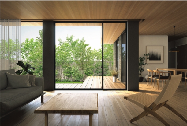 テラスタイプは室内外がフラットにつながり空間に広がりを感じることができ、
