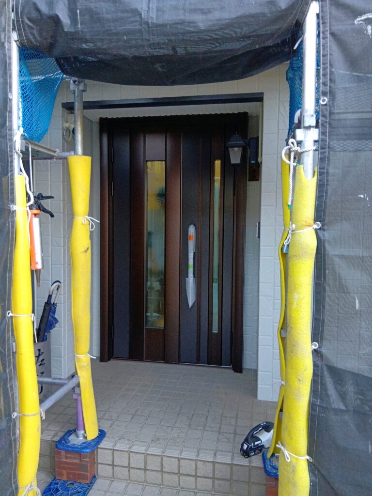 今回御紹介するのは、一般住宅の玄関ドアをカバー工法でリフォームした事例です。 カバー工法とは、既設の枠を残して新しい枠をつける工法です。 壁や床を壊すような大掛かりな工事は一切不要で、1日で施工が完了します。 玄関ドアの交換は、住まい全体の印象を大きく左右するリフォームのひとつです。 家の雰囲気が引き締まり、毎日使う場所だからこそ、 使い勝手の良さや清潔感が暮らしの快適さにつながります。 Before After ドアひとつで、ここまで印象が変わります。 毎日使う場所だからこそ、見た目と機能性の両立を叶えました。